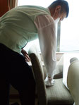 人が利用する度に、座席、手すり等、触れる場所の消毒を行います。