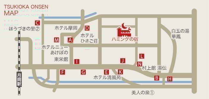 巡って楽しい、足湯やパワースポットをはじめ、新潟が誇る日本酒やワインなどが試飲できるお店の他、新潟生まれの干物や発酵食品が試食できるお店、煎餅の手焼き・絵付けが体験できるお店もあります。月岡の街歩きを、お楽しみください。