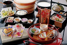 春~初秋は農家として減農薬にこだわった特別栽培米「つや姫」や大豆等をつくり、晩秋~春までは料理人として「地産地消」を心掛け、地元食材を使用し本格的な日本料理を提供しています。