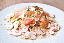 越沢地域のみで栽培されてきた在来作物「越沢三角そば」は木の実のように香ばしく、甘みがあります。そば打ちも自然薯をつなぎに越沢独自の製法で行われ、“ツルっ”とした喉ごしが特徴です。