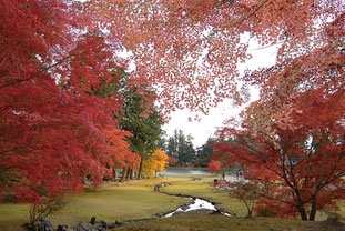 参道沿いや経蔵、讃衡蔵周辺はイロハモミジやヤマモミジが鮮やかに色づきます。