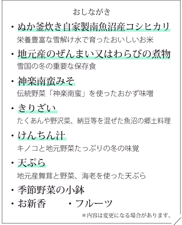 南魚沼産コシヒカリと地域の食材をいただく