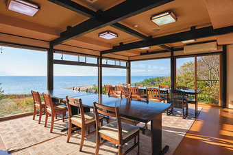佐渡・日本海・信濃川が一度に見渡せる和風レストランで、新鮮な魚介を堪能できる。