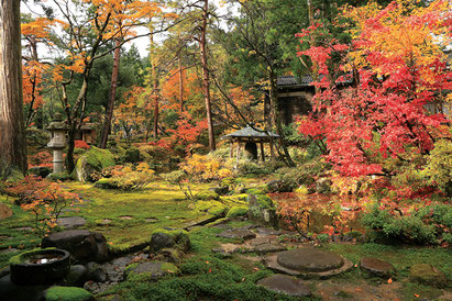 樹齢150~200年のもみじやカエデなどが大地主・高橋家の別荘庭園を色鮮やかに彩る。