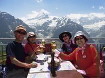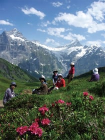 ハミングの海外ツアーは少人数なので、添乗員と「小回りの利くコース」設定が可能です。過去7年間で7~12名様で出発しており、平均は8名様です。人数が少ないと言うことは、海外旅行では圧倒的なメリットになります。特にスイスのような「自然を楽しむ」行き先は、天気や花の状況が旅の善し悪しを大きく左右することになります。添乗員がモバイル端末を駆使して、気象レーダーの雲の動きや、標高別の天気予測に加え、ライブカメラ画像によって実際の天気を確認しながら、歩くルートを設定しています。雲の中で展望台に上がっても何も見えませんし、時には足止めを食うこともあります。ハミングが過去のツアーで「お目当ての山」が見られなかった、と言った残念な結果が無いのは、そのような理由があるのです。もちろんメンバーの体力や技量、花の状況なども総合的に加味して柔軟にコースを調整しています。