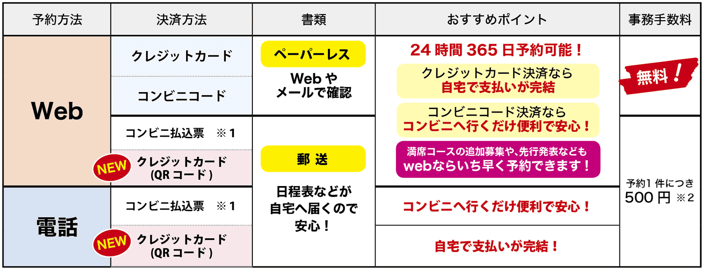 1. 申込み日によって払込方法が異なります。早めのお申込が便利かつお得です!