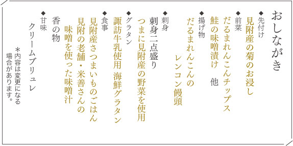 「おいしかったよ」の一言を原動力に、「お客様の笑顔」を大切にしたおもてなしと料理を提供しています。