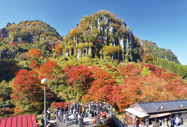 名勝・耶馬渓の中でも特に風光明媚と称される、奇峰と渓谷、紅葉が織りなす絶景